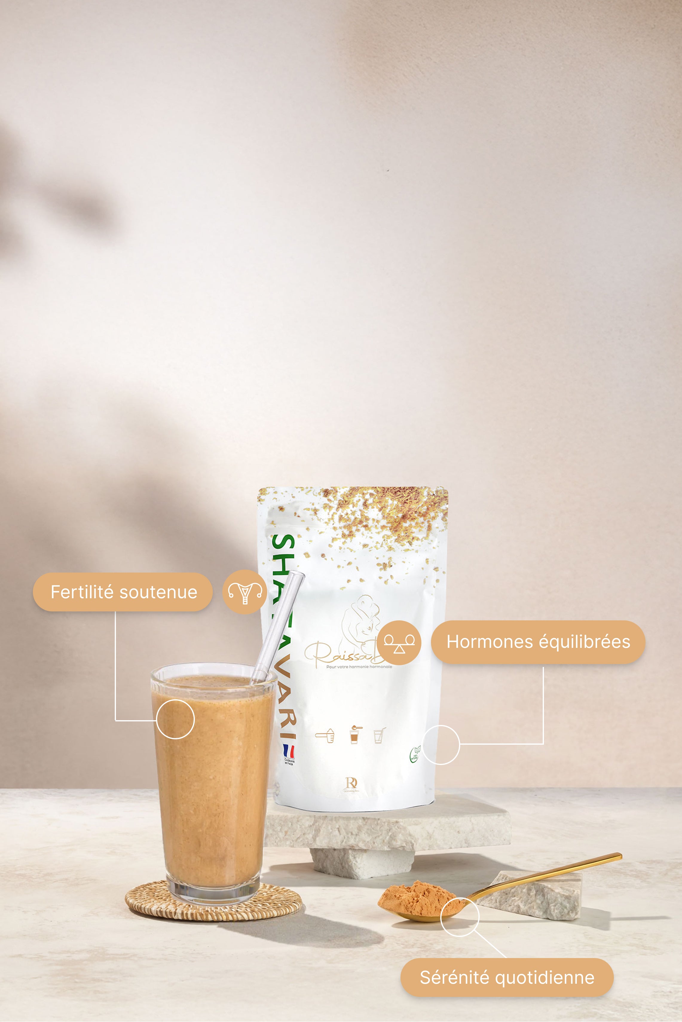 Une poudre ayurvédique pour soutenir votre cycle, votre fertilité et votre bien-être hormonal au quotidien.